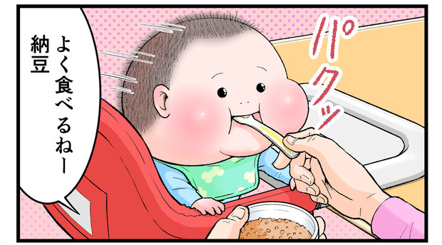 7ヶ月頃、よっぽど味が好きなのか納豆の時だけ異様にテンションが高く、その美味しさを全身で語っていた気がします。(数ヶ月すると、こういう動きは全くしなくなったので少しさみしいです。)