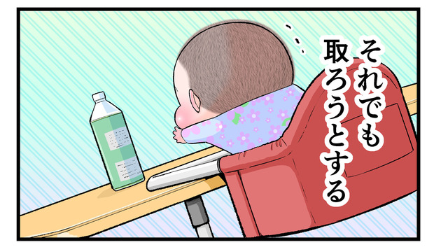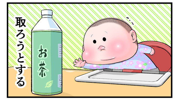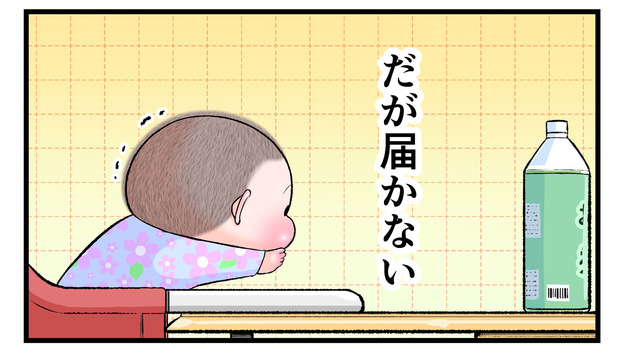 まだまだ赤ちゃんの手の長さが足りず、欲しいけれど届かないものもあるでしょう。しかし、一心不乱に手を伸ばす赤ちゃんの眼差しに一点の曇りなし…。その執念に限界はありません。