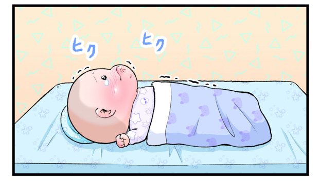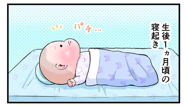 にくきゅうぷにおさんの長男・ぷにおくんが生後1ヶ月のころ…心地よく眠っていたときにふと目覚め、ママの気配が感じられないことと自分が思うように動けないこととで、その場で泣いてママを呼ぶ姿が目立っていたようです。