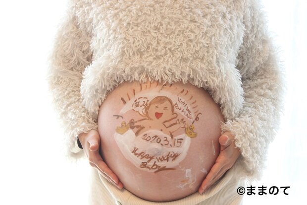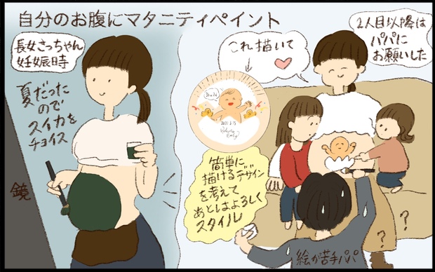 おおもりさんに許可をいただき、エッセイ内で紹介したマタニティペイントとフェイスペインとの様子をお届けします。