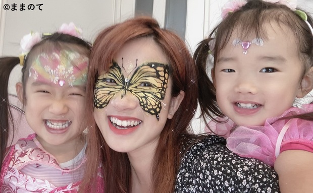 現在はその会社を辞めてしまいましたが、友人や自分が妊娠した際にはお腹にマタニティペイントを施したり、季節のイベントで自分の子どもたちにフェイスペイントをしてあげたりと、今までの経験がとても役立っています。