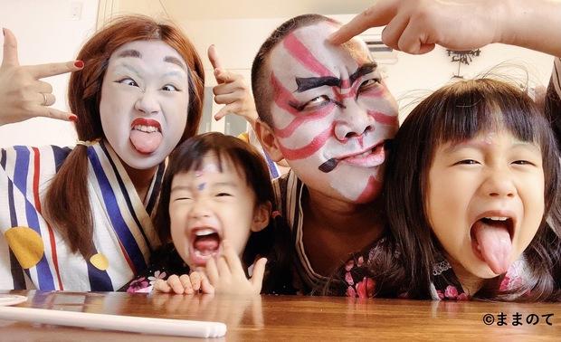 余談ですが、パパは歌舞伎メイク、ママは能面メイクと子どもが絶対に喜ばないフェイスペイントをして子どもたちを怖がらせてしまいました(笑)。(写真(4))
