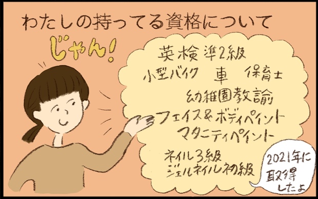 突然ですが、みなさんは何か資格を持っていますか?有名なものから、マイナーで珍しいものまでさまざまな資格があると思います。わたしの持っている有名な資格は英検、保育士、幼稚園教諭、ネイルの資格。マイナーな資格だと、フェイス&ボディペイント、マタニティペイントの資格を持っています。